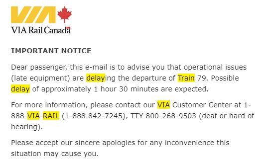 I love how I was 1-3 hours delayed because someone took their lives on the tracks and caused cascading delays across the VIA network (multiple times).