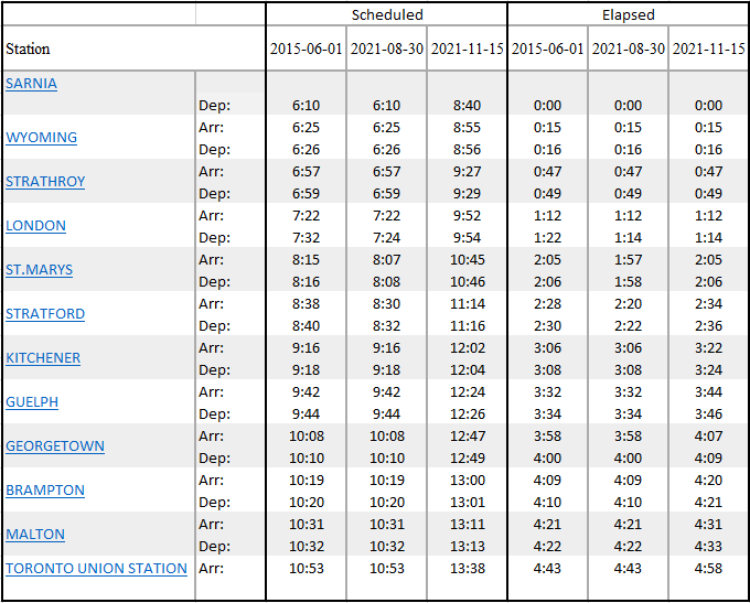 Great to see that they're updating the times for 84 to be more realistic. It's a bit disappointing to see them drop the option for commuting from Sarnia/Strathroy to London but I guess not many people were doing that anyway.