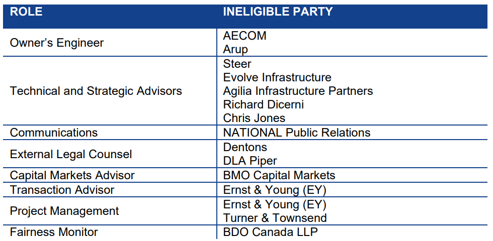 Also, it looks like an EA will be conducted by the winning proposal since the bidder will be deciding the route: perhaps a 2028 construction start?