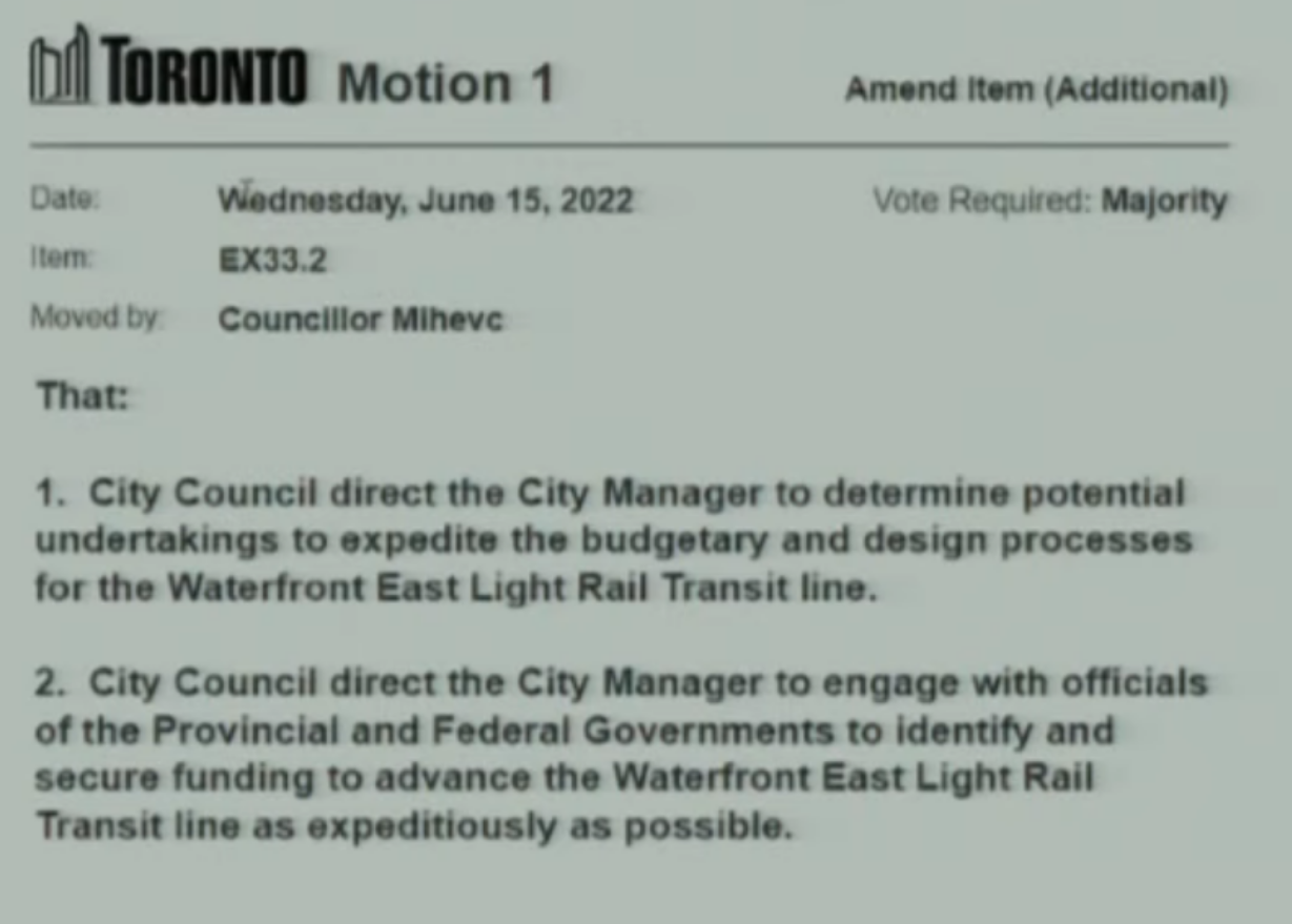 Today, Toronto City Council unanimously voted in support of advancing work on the Eglinton East Light Rail Transit (LRT) and the Waterfront East LRT.