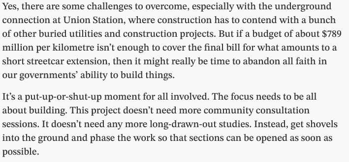 Worth noting then, as the Broadway project is winding down, that the original tender in 2020 was for 1.7B and change.....and the current cost is estimated at over 2.9B . So that project is ~70% over budget.