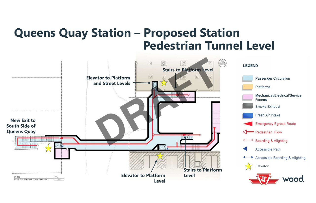 Tunnel continues to the south side of Queen's Quay and the ferry docks.