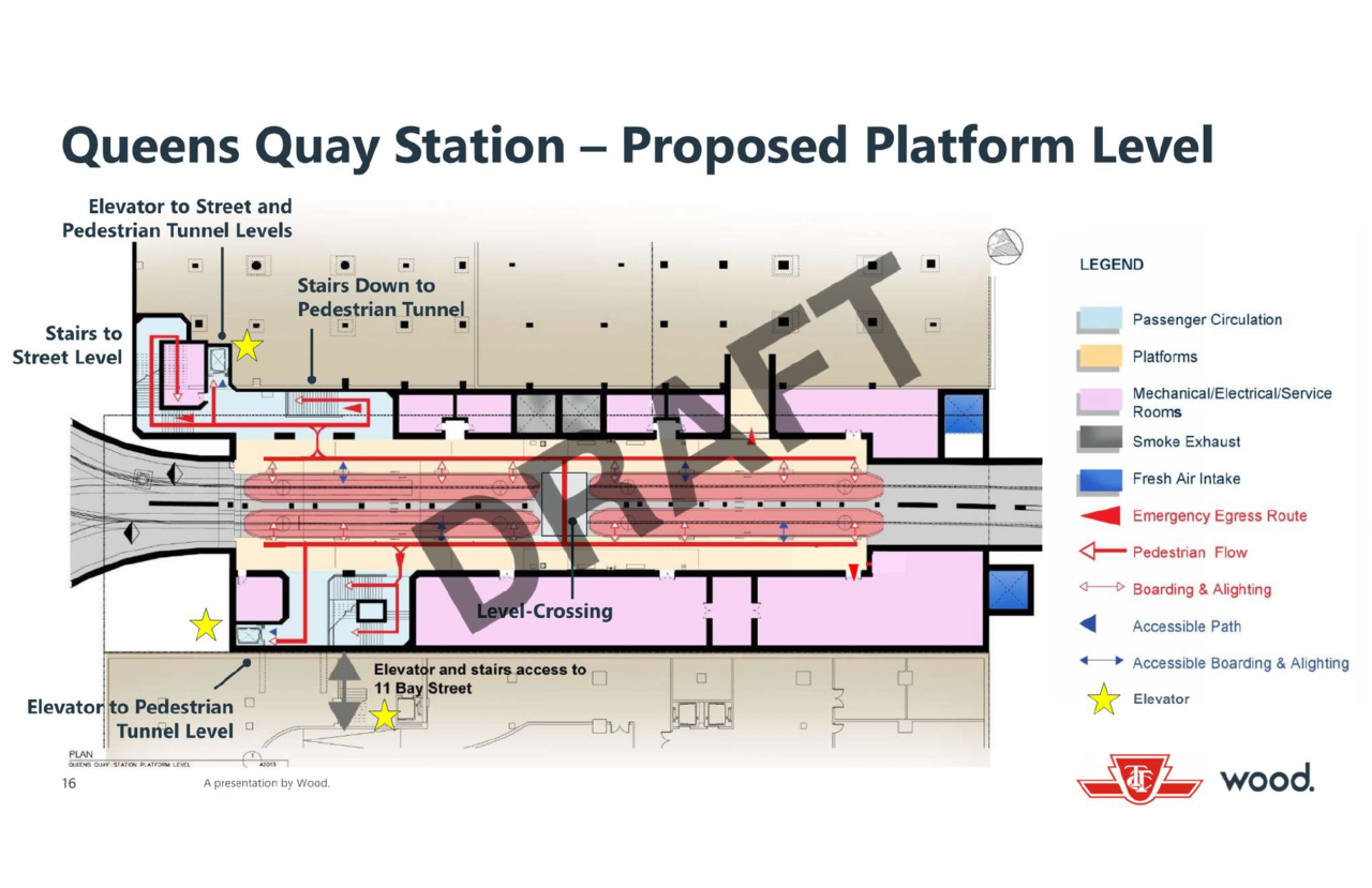 Change to Queens Quay Station with a walkway between cars for 2 car platform platform now. Have issues with this.